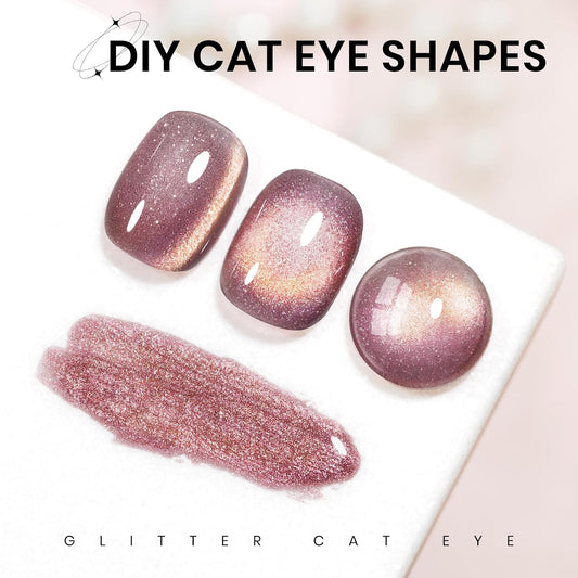 Brown Cat Eye Gel Nail Polish, 15ML Magnetic Glitter Crystal Cateye Gel Polish with Magnet Soak Off Salon DIY at Home