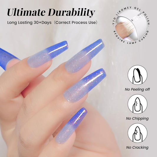 YTD Likomey Brocade Glitter Color Changing Gel Nail Polish,15ml Light Blue To Blue Shimmer Mood Temperature Change Colors Iridescent Flakes,Fall Winter Thermal Ombre UV Nail Gel,WB354
