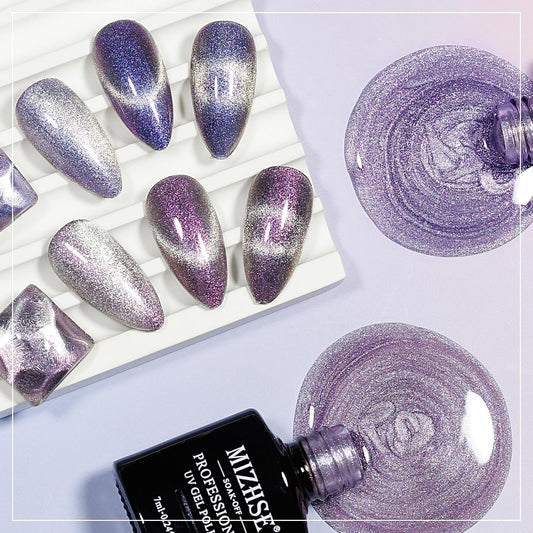 MIZHSE Aurora Cat Eye Gel Nail Polish, 2 Colors Magnetic Gel Polish with Magnet, Holographic Shimmery Shiny Effect Soak Off Nail Art Manicure Home