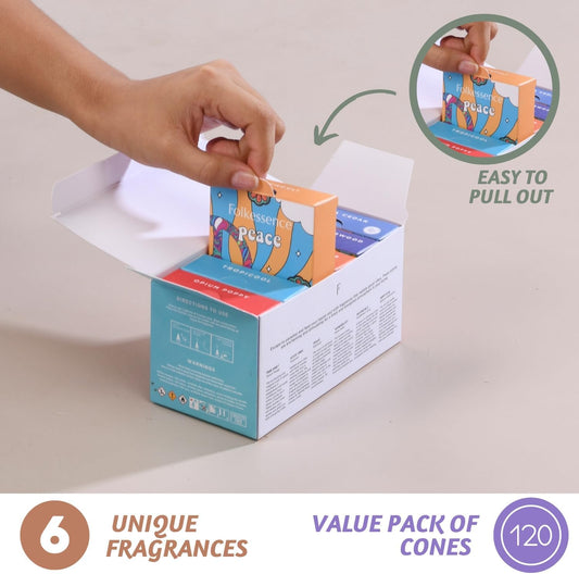Folkulture Incense Cones Scented | Set of 6 Fragrances (120 Cones) with Incense Cones Holder for Relaxation | Rosemary Jasmine, Patchouli Incense, Lavender Incense Variety Pack | Inscents-Cones