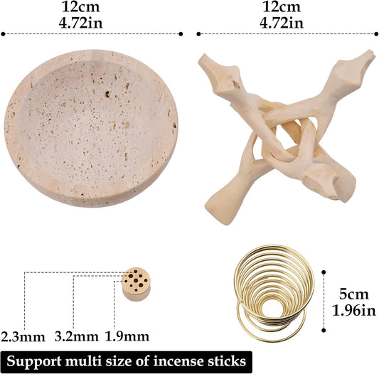 Natural Marble Incense Holder, Palo Santo and Sage Burner, Handmade Incense Burner for Smudging, Incense Burning, and Home Decoration (Cream)