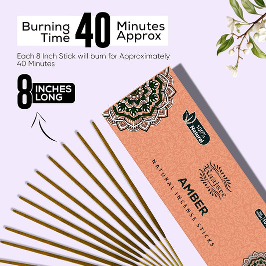 Raajsee Amber Incense Sticks 100 Gm Pack-100% Pure Organic - Natural Hand Rolled Free from Chemicals-Insence for Church,Relaxation, Meditation & Sensual Therapy