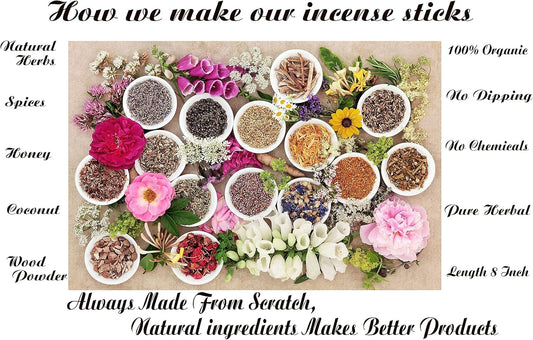 raajsee Incense Sticks 6 Pack Variety Set 15gm Each, Nag Champa- Jasmine - vanila-Japanese Rose-White Sage,100% Organic Hand Rolled- Perfect for Yoga, Meditation,Aromatherapy