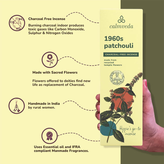 1960s Patchouli Incense Sticks Pack - (80 Sticks) Charcoal Free Incense, Made from Upcycled Flowers | Organic Incense Sticks Non Toxic | Relaxation Pachouli Incense for Calming