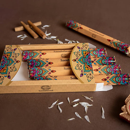 Raajsee Sandalwood Incense Sticks (180 gm), 100% Pure Organic Natural Hand Rolled Free from Chemicals - Sandalwood Incense Perfect for Aromatherapy, Cleansing, Meditation, and Church (Pack of 12)
