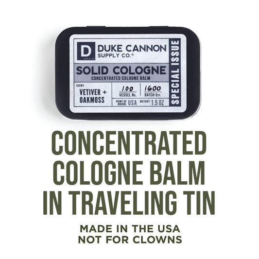 Duke Cannon Supply Co. Solid Cologne for Men Special Issue Vetiver and Oakmoss (Fresh Air, Sandalwood) - Concentrated Balm, Travel-Friendly Tin, 1.5 oz