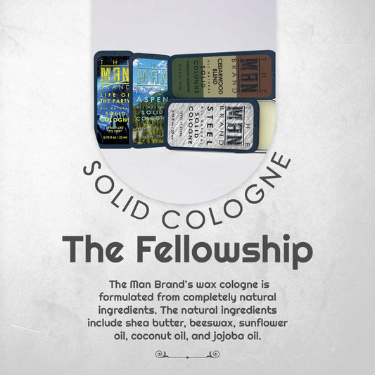 Solid Cologne Sample Set with Aspen Solid Perfume, Woodsman Solid Cologne, Steel, and Life of the Party Cologne - (Fellowship Solid Cologne Man Sampler Pack - 4 Pack - 0.75 oz each)