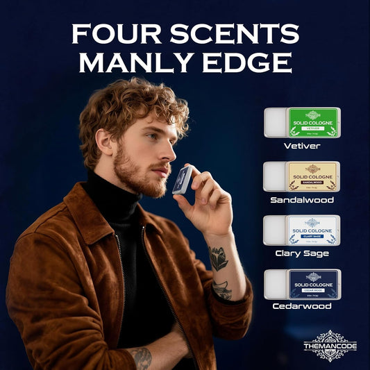 Solid Cologne for Men, Stocking Stuffers, Gifts for Men, Sandalwood, Vetiver, Cedarwood, Sage Scents, 4 Pack