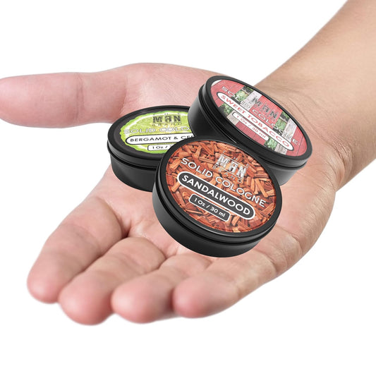 Solid Cologne Men's Cologne Sample Set, Solid Perfume with a Sweet Tobacco, Citrus Bergamot, and Sandalwood Men's Fragrance (1 Ounce (Pack of 3), Bergamot and Cedar/Sandalwood/Sweet Tobacco)