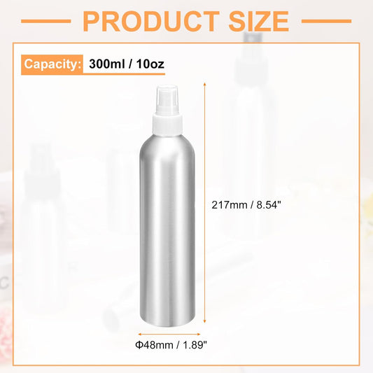 HARFINGTON Aluminum Fine Mist Spray Bottles 300ml/10oz Metal Small Liquid Alcohol Refillable Travel Container with White Plastic Nozzle Cap for Perfume Skincare Cosmetic Storage Bottle