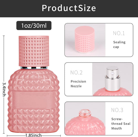 2 Pack 30ml Perfume Spray Bottles Empty, Refillable Glass Fine Mist Atomizer, Portable Travel Perfume Atomizers Fragrance Containers Sprayer for Cleaning, Essential Oils, Liquids (Pink)
