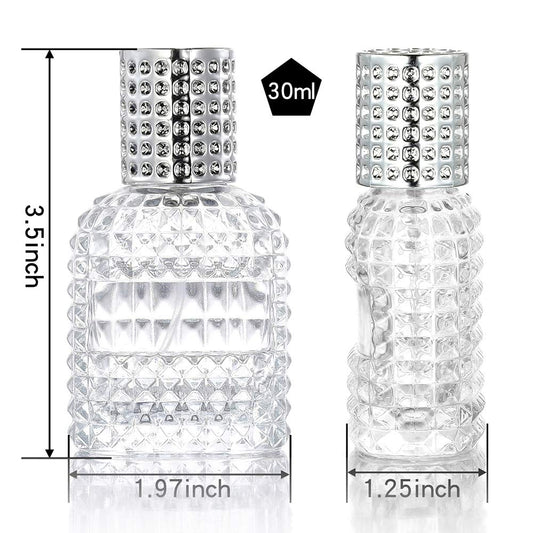 2 Pack 30ml Refillable Clear Glass Fine Mist Empty Spray Perfume Bottles, Atomizer Spray Bottle With 4 kinds of perfume dispenser (Silver cap and Gold cap)