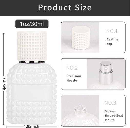 2 Pack 30ml Perfume Spray Bottles Empty, Refillable Glass Fine Mist Atomizer, Portable Travel Perfume Atomizers Fragrance Containers Sprayer for Cleaning, Essential Oils, Liquids (White)