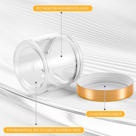 SATINIOR 36 Pieces 2 oz Plastic Jars with Lids Wide Mouth Airtight Reusable Container Acrylic Cosmetic Small Jars for Lotions Ointments Travel Toiletries Creams Make up Storage(Gold)