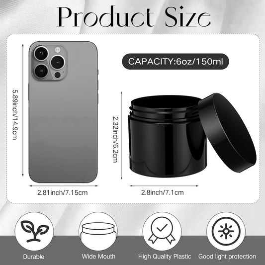 Patelai 4 Pieces Round Wide-mouth Leak Proof Plastic Container Jars with Lids for Travel Storage Makeup Beauty Products Face Creams Oils Salves Ointments DIY Making(6 Ounce,Pure Black)