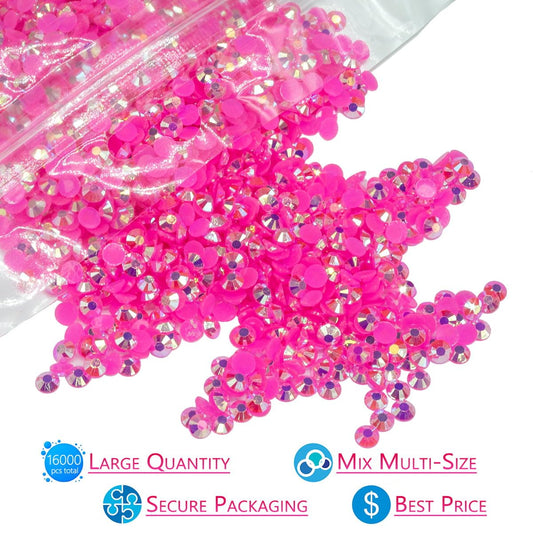 16000PCS Hot Pink AB Resin Rhinestones for Crafting 3mm 4mm 5mm Rose Pink Flatback Jelly Stones Bulk SS10 SS16 SS20 Diamonds Gems Charms for Nails Face Eyes Makeup Mugs Tumblers Bottles Crafts Shoes