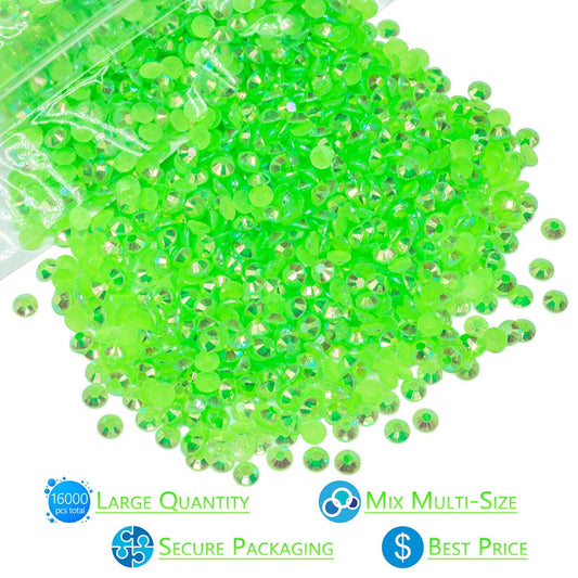 16000PCS Peridot AB Resin Rhinestones for Crafting 3mm 4mm 5mm Fresh Green Flatback Jelly Stones Bulk SS10 SS16 SS20 No-Hotfix Diamonds Crystals Gems for Nails Face Eyes Makeup Tumblers Bottles Crafts