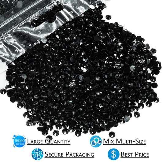 16000PCS Pure Black Resin Rhinestones for Crafting 3mm 4mm 5mm Flatback Jelly Stones Bulk SS10 SS16 SS20 Diamonds Gems Charms for Nails Face Eyes Makeup Tumblers Bottles Crafts Clothes Shoes