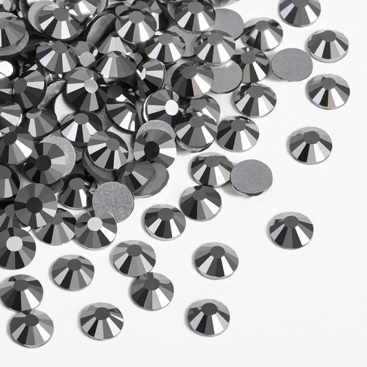 beadsland Flat Back Crystal Rhinestones Round Gems for Nail Art and Craft Glue Fix, Silver Hematite (2.9-3.0mm) SS12/1440pcs