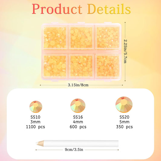 Multi Size 3mm 4mm 5mm Rhinestones Set for Nails Crafts Lemon Yellow Non Hotfix Rhinestones Nail Gems Rhinestone Round Flat Back Resin Rhinestone for Makeup Clothes Shoes Eyes Bottles Crafts