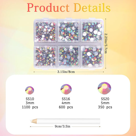 Multi Size 3mm 4mm 5mm Rhinestones Set for Nails Crafts Champagne Non Hotfix Rhinestones Nail Gems Rhinestone Jelly AB&Round Flat Back Resin Rhinestone for Makeup Clothes Shoes Eyes Bottles Crafts