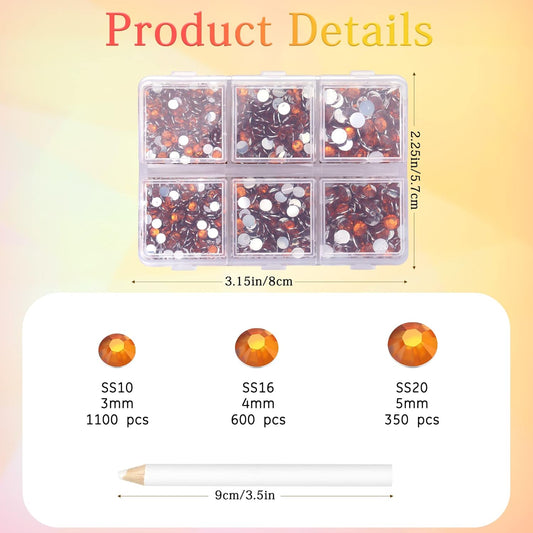 Multi Size 3mm 4mm 5mm Rhinestones Set for Nails Crafts Orange Non Hotfix Rhinestones Nail Gems Rhinestone Round Flat Back Resin Rhinestone for Makeup Clothes Shoes Eyes Bottles Crafts