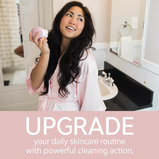 Vanity Planet Raedia 2.0 Facial Cleansing Brush, 4 Interchangeable Brush Heads, Pink - Daily Cleansing Face Exfoliator for Glowing & Acne Prone Skin - Lightweight Silicone Water-Resistant Body Brush