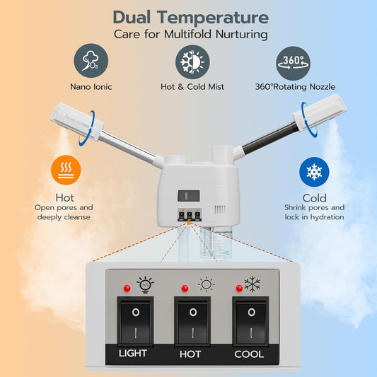 Professional 2 in 1 Facial Steamer Upgrade Esthetician Steamer with hot & Cold Nozzle Beauty Salon Spa