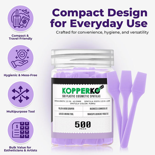 Mini Beauty Spatula (2.5", 500 Pack) - Small Beauty Spatulas for Creams, Cosmetics & Crafts | Moisturizer Applicator for Mixing, Cosmetic, Face Mask | Disposable Makeup Spoon | Purple