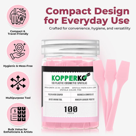 Cosmetic Spatulas (2.5”, 100 Pack) - Small Plastic Spatula for Cosmetics, Creams & Crafts | Essential Esthetician Supplies | Makeup Spatula or Multipurpose Mini Applicator for Skincare | Pink