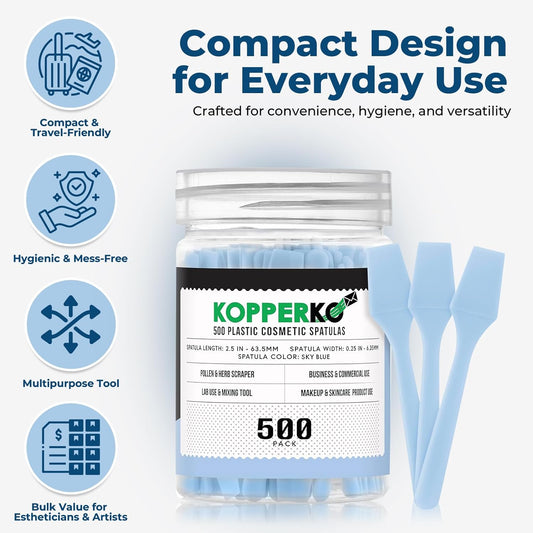Mini Skincare Spatula (2.5", 500 Pack) - Small Makeup Scoop Spatula for Skincare, Creams, & Crafts | Face Cream Applicator for Mixing, Cosmetic, Face Mask | Skin Care Applicator | Sky Blue