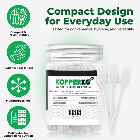 Mini Skin Care Spatula (2.5", 100 Pack) - Small Spatula for Makeup, Creams & Crafts | Makeup Applicator for Mixing, Cosmetic, Face Mask | Disposable Cosmetic Applicators | White