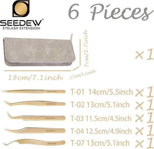 SEEEDEW Tweezer Eyelash Extensions - 1 Pcs Stainless Steel Curved Pointy Precision Tweezer for Lash Tech, Lash Artist Beginner (Golden)