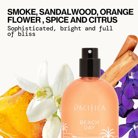 Pacifica Beach Day Spray Perfume, Fragrances, Bliss, Bergamont, Orange Flower, Sandalwood, Amber, Suede Leather, Clean Perfume, Parfum, Eau de Toilette Clean Vegan & Cruelty-Free