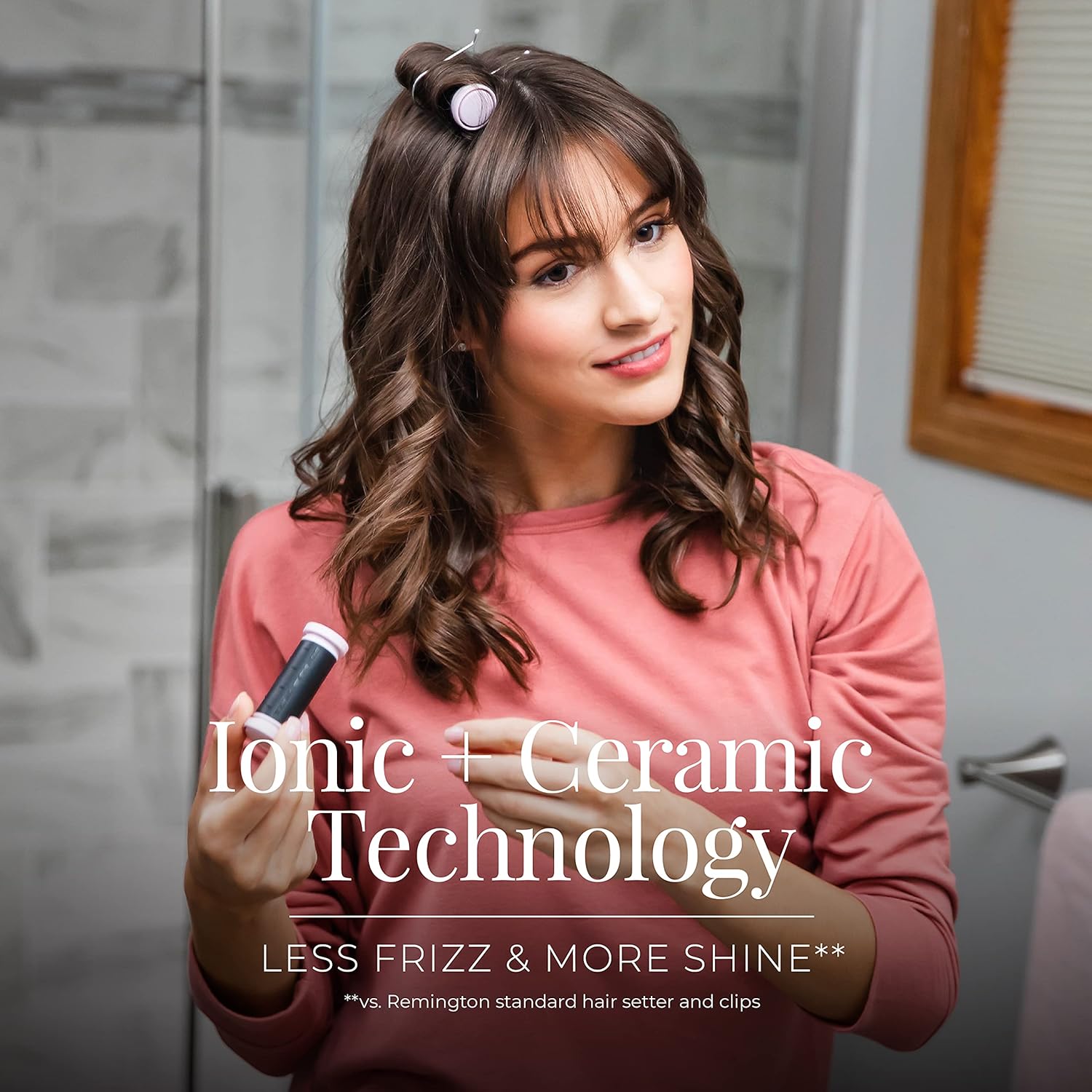 Remington Compact Ceramic Dual Voltage Hot Rollers for Long and Short Hair, Hair Setters, Hair Curlers, 1-1 ¼" Purple/Black, 10 Piece Set