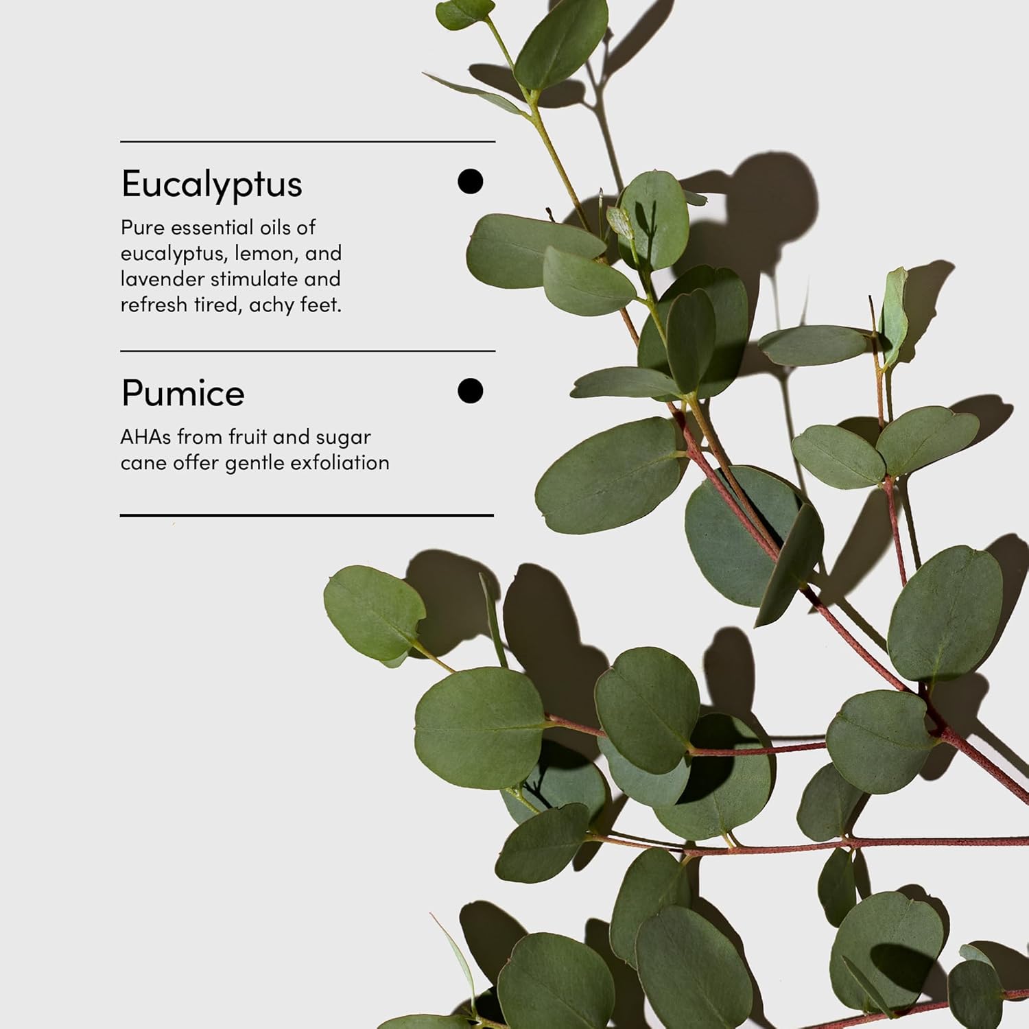 - EXFOLIATING FOOT SCRUBBER & PUMICE STONE: LATHER's Eucalyptus Foaming Foot Scrub with Pumice Stone is perfect as a shower foot scrubber, to be used in a pedicure kit, or used between salon visits