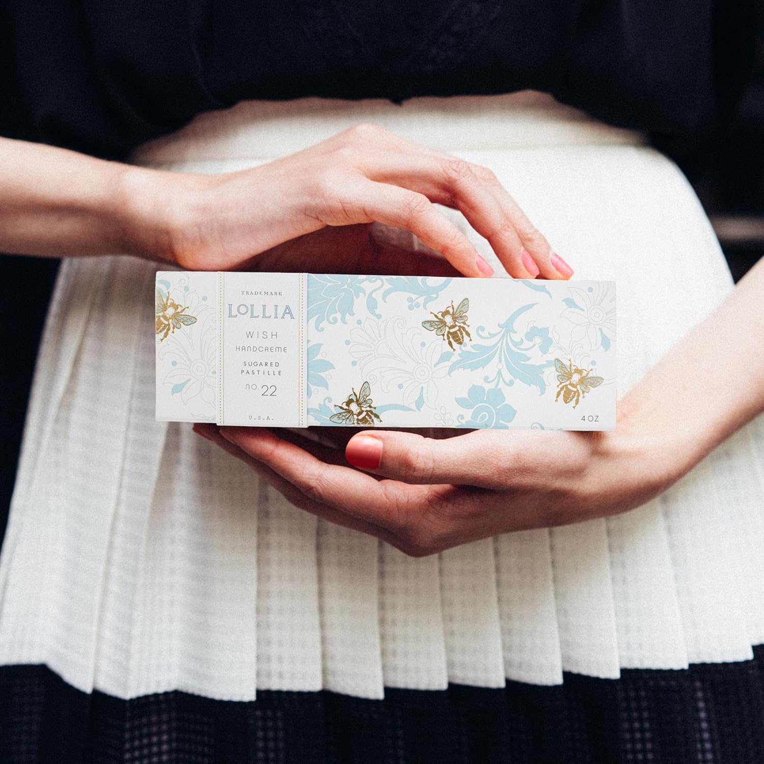 - A BEAUTIFUL KEEPSAKE BOX: Perfect to gift, even better to keep. This hand lotion comes in a perfectly romantic sleeve of golden bees buzzing across blue French-inspired foulard slips over a box of elegantly understated flowers and vines