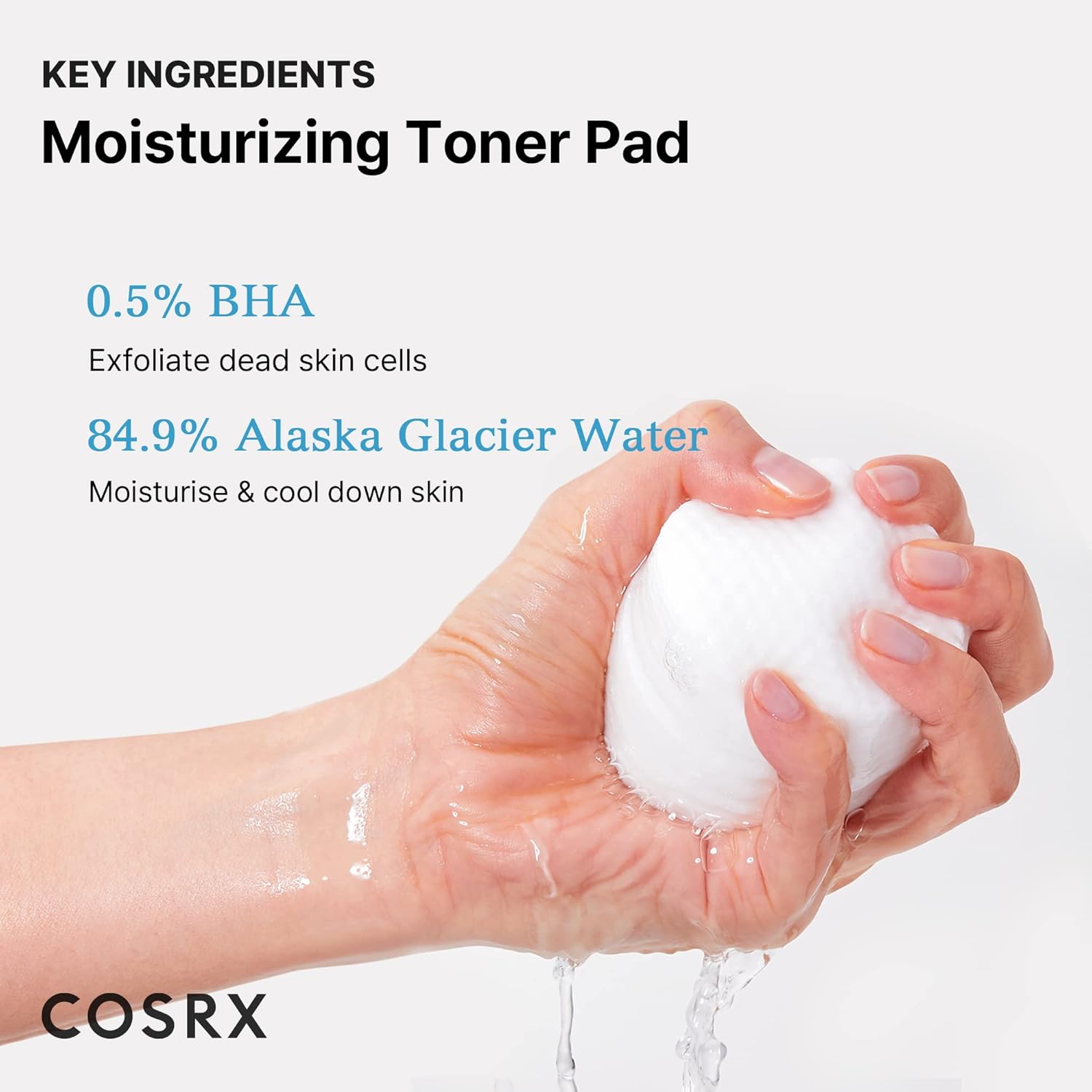 - Key Ingredients: 0.5% BHA (Betaine Salicylate) helps exfoliate dead skin cells to leave the skin feeling and looking smooth. 84.9% Alaska Glacier Water refreshes the skin by moisturizing and cooling down heated skin.