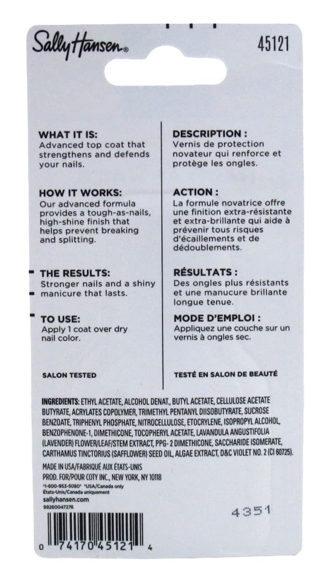 - HOW TO USE - Apply 1 coat over dry nail color to seal and strengthen