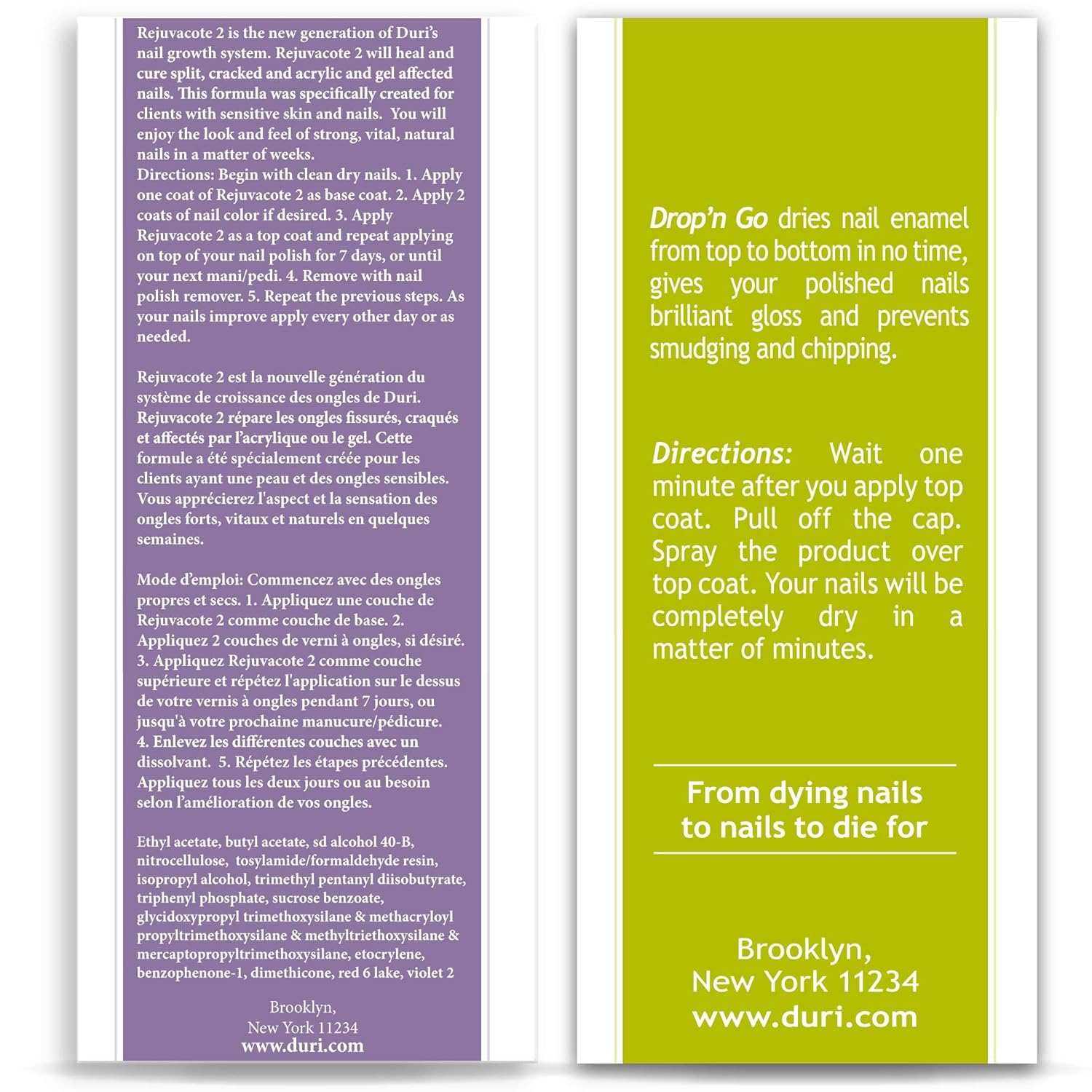duri Rejuvacote 2 Nail Growth System Base and Top Coat, Drop'n Go Nail Polish Drying Drops - Nails Hardening, Growth, Damage Repair, Chipping, Breaking and Brittle Treatment (0.61 fl.oz) Combo Pack