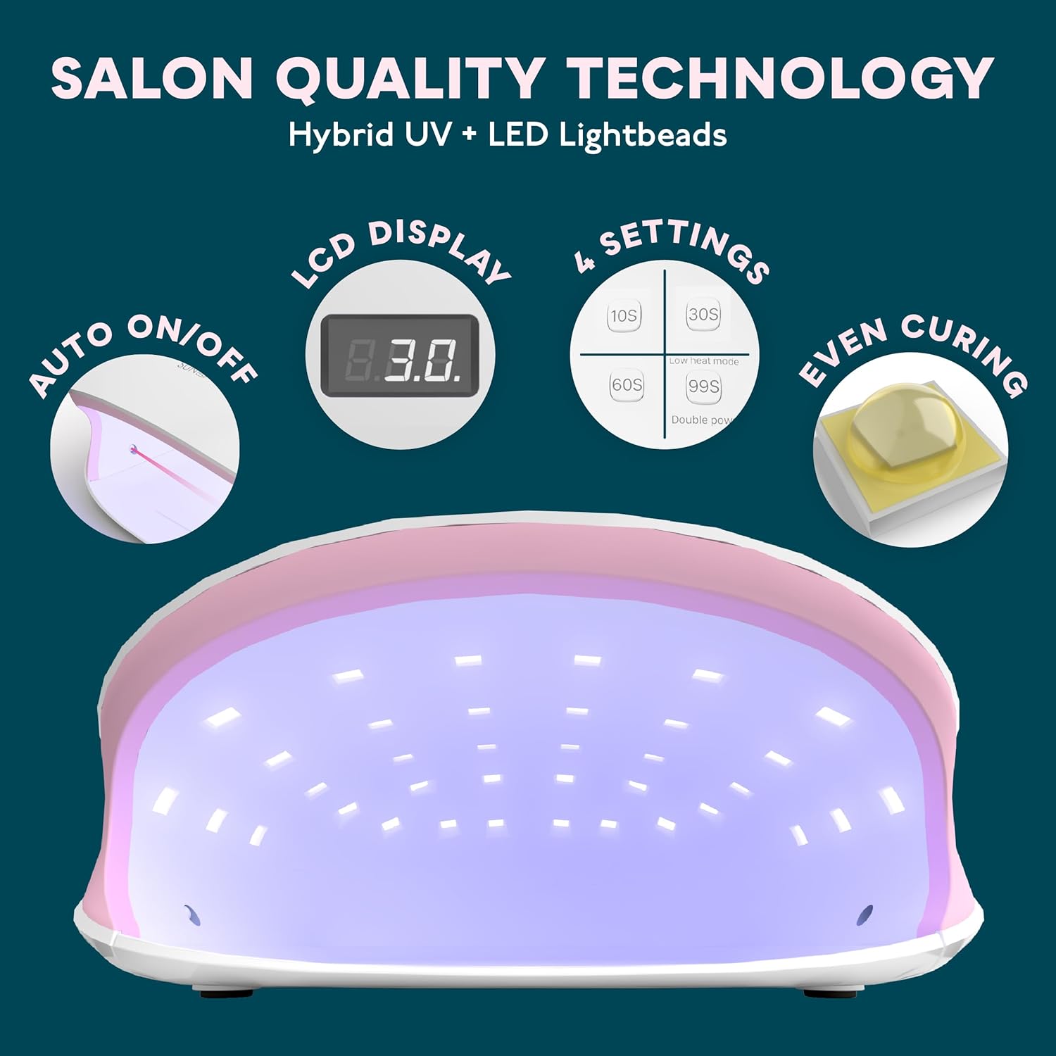 - Elevate your Nail Game: Our LED UV Gel Lamp for Nails, a must-have for your personal nail care. With its sleek design, featherweight build, it ensures rapid gel nail drying, with a large LCD display adds a touch of convenience