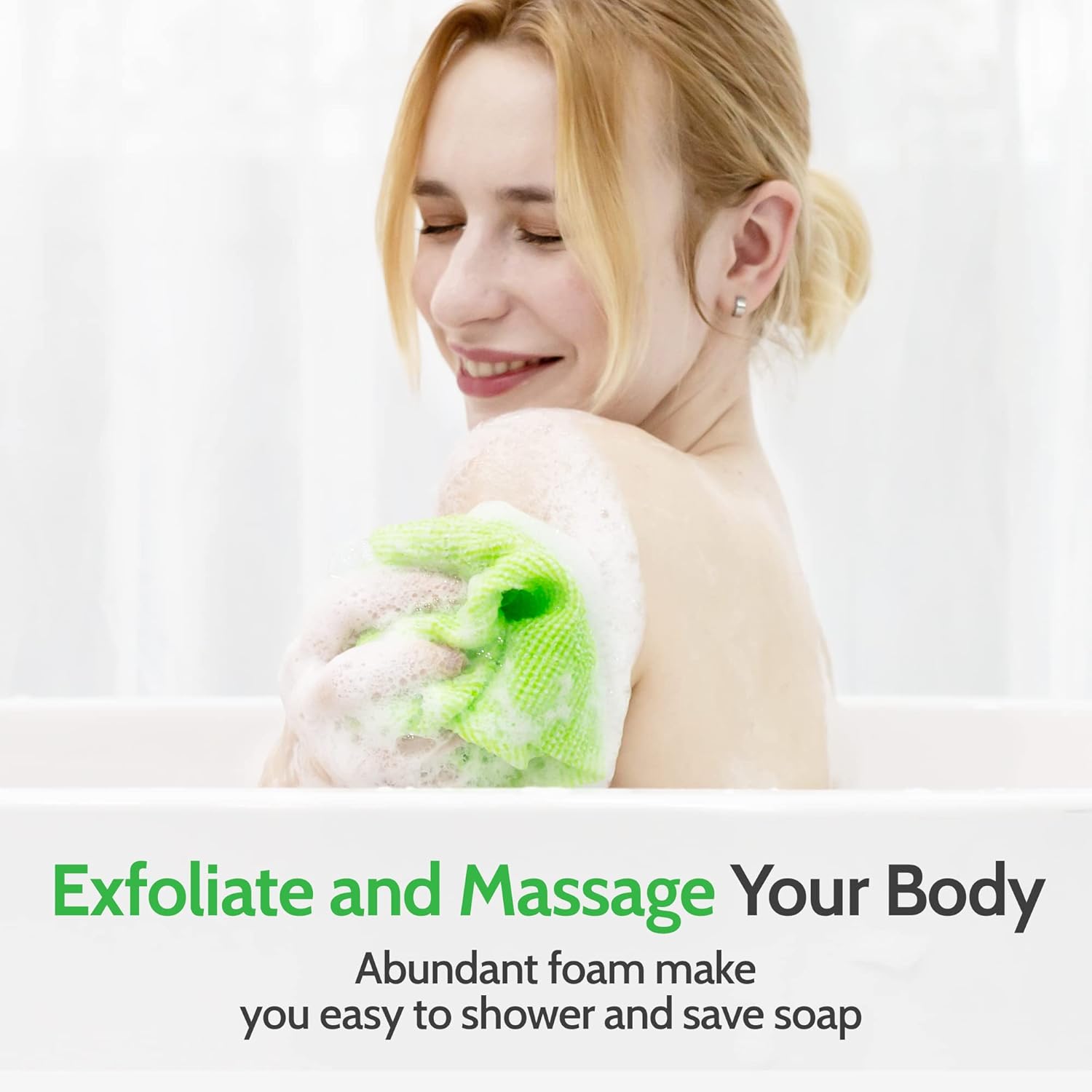 Modu 4 PCS Long Exfoliating Washcloth - African Bath Net Sponge Loofah Japanese Washcloth Body & Back Scrubber for Shower, Deep Cleansing (Pink, Sky Blue, Yellow, Green)