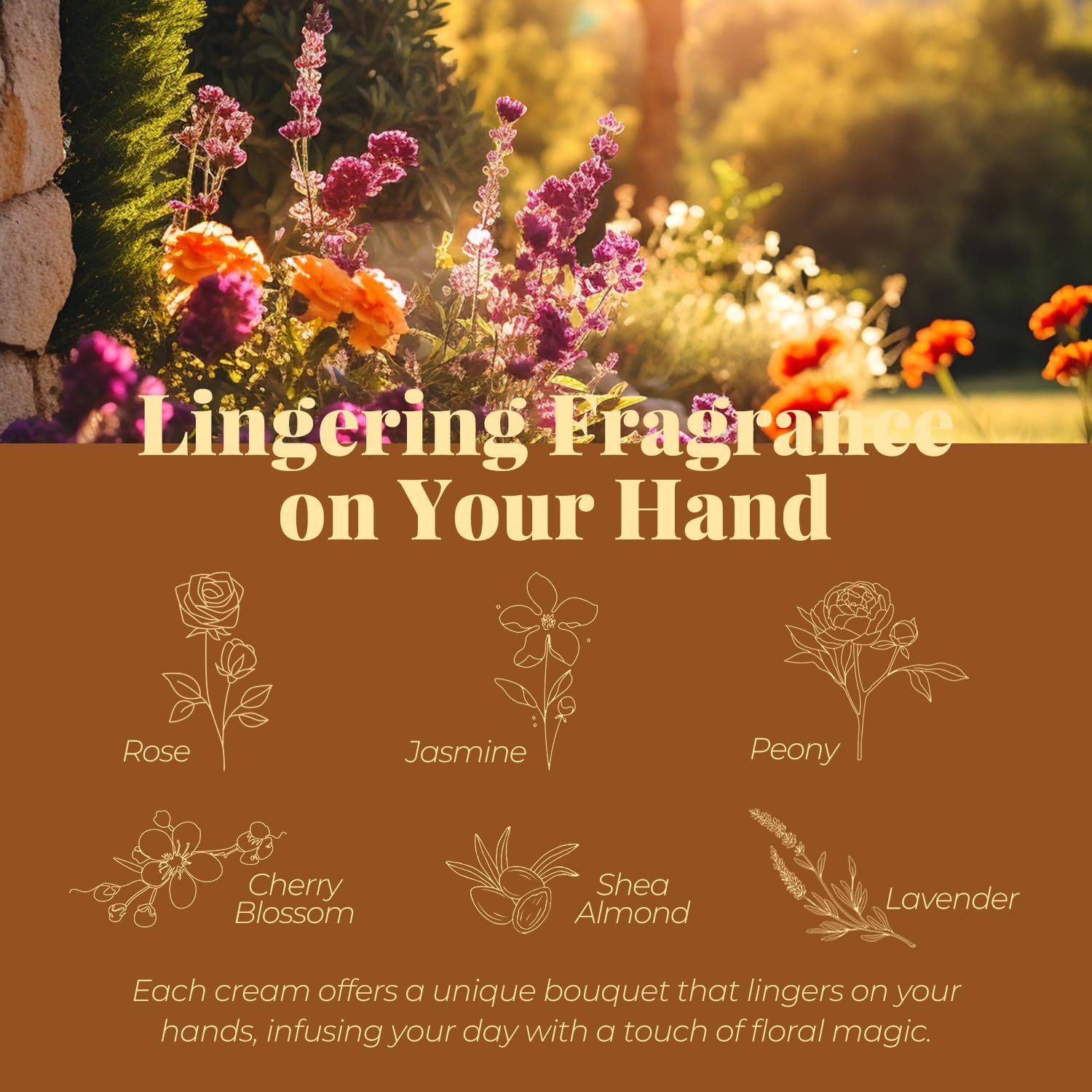 - 6 Fresh Fragrances: Choose Cherry Blossom, Lavender, Shea Almond, Rose, Jasmine and Peony. Our fragrant aromatherapy lifts your spirit and nurtures your soul. Pick and choose your favorite scent based on your mood at the moment