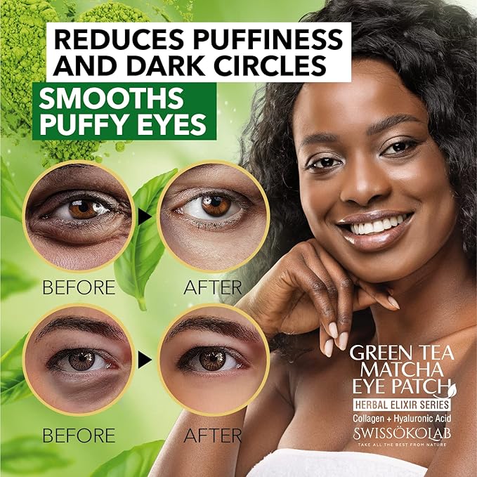 SWISSÖKOLAB Under Eye Patches For Puffy Eyes 24k Gold Eye Mask Dark Circles And Puffiness Collagen Eye Gel Pads Moisturizing & Reducing Wrinkles Anti-Aging Hyaluronic Acid (Green Tea)