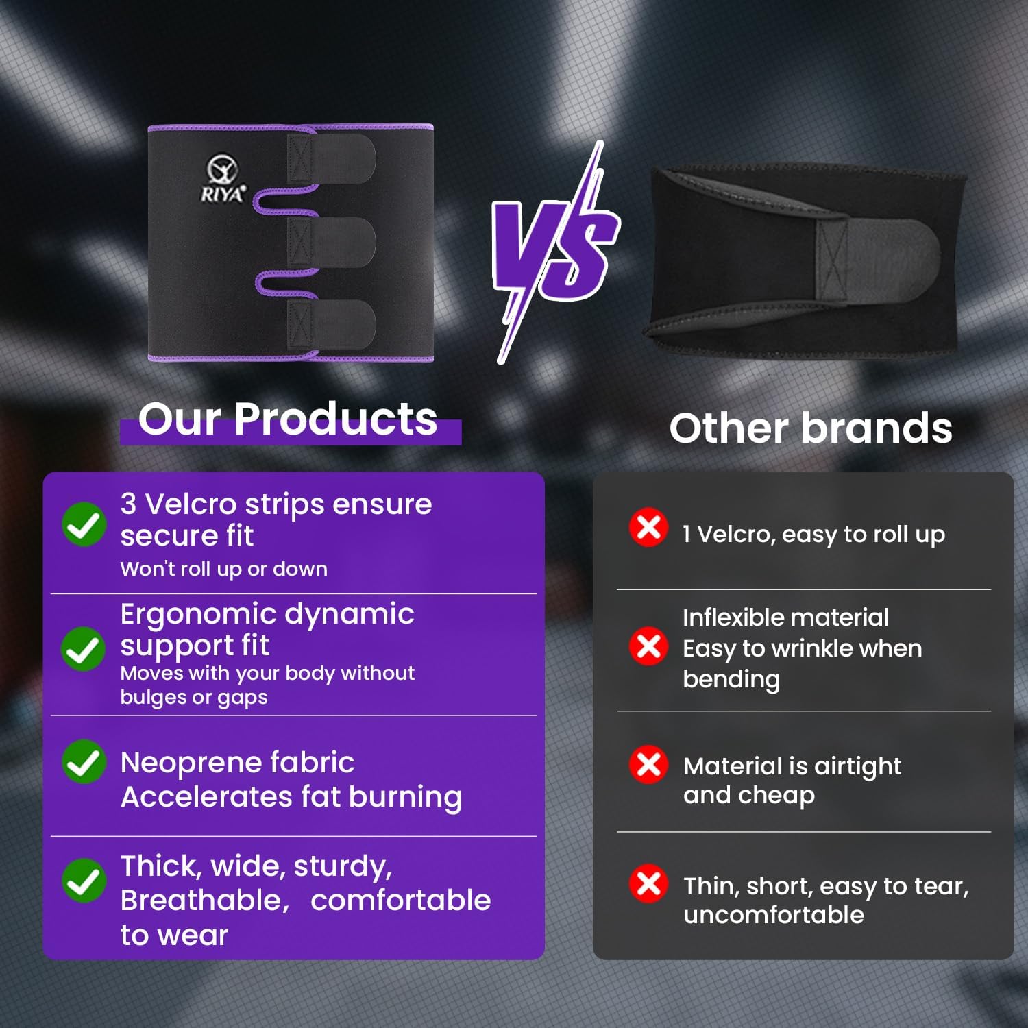 - Perfect Fit & Ajustable to Various Body Shape with Our Unique Velcros——RIYA sweat band for stomach are longer and wider than others, which fulfill various people’s need; Plus unique three-part strong Velcros enable you to adjust the slim stomach belt to wrap your tummy just right, our sweat belt for women won’t come loose or move up and down, even for those who have a fat flabby belly.