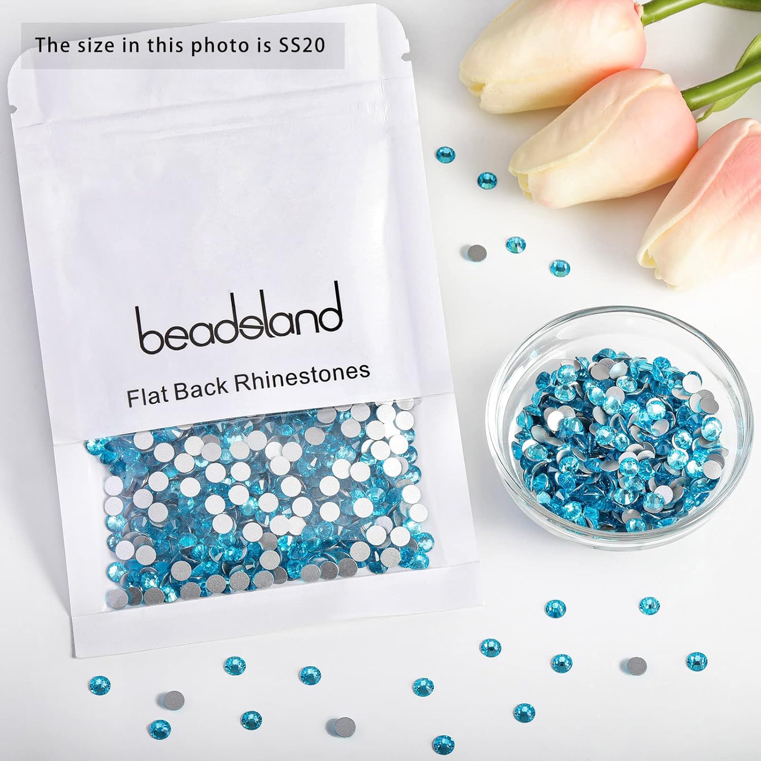 beadsland Flat Back Crystal Rhinestones Round Gems, Aquamarine (4.6-4.8mm) SS20/1440pcs