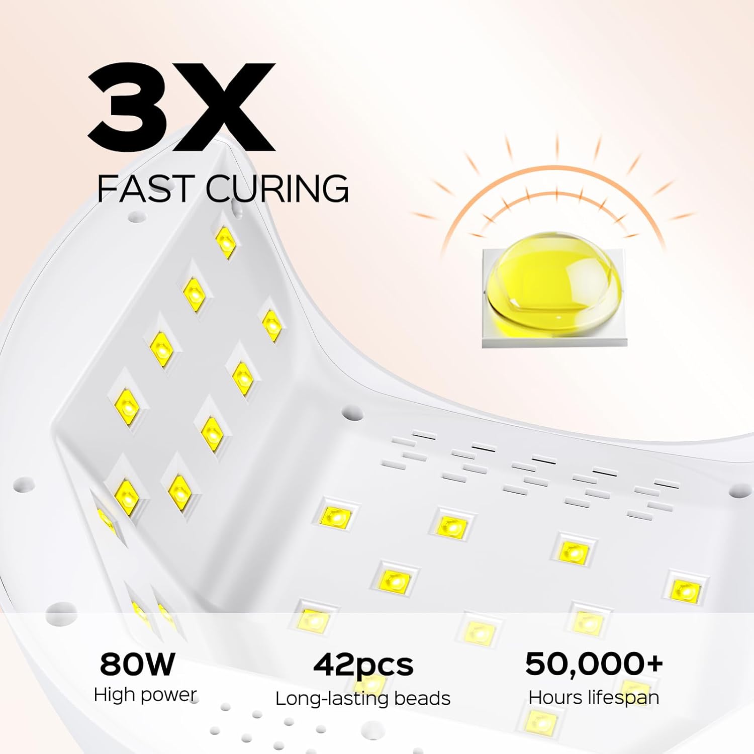 - 【Compatible with All Gel Polishes】Say goodbye to frustrating compatibility issues with our UV LED nail lamp! It works with all types of gel polishes, including base coat, top coat, color gel, hard gels, builder gels, polygels, and more.