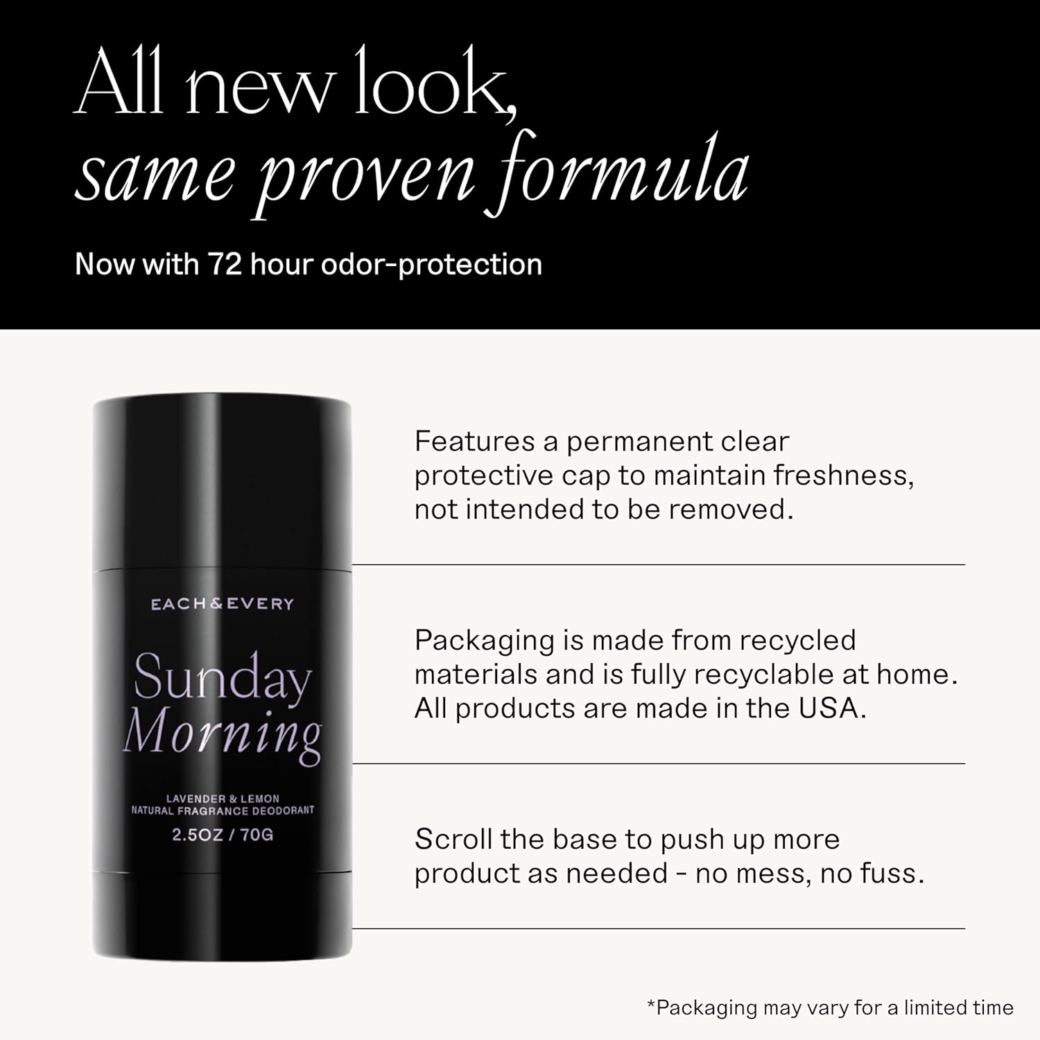 Each & Every Aluminum Free Deodorant for Women & Men, Lavender & Lemon - All Natural Deodorant for Sensitive Skin, EWG Verified - Clean, Baking Soda-Free, Plant-Based Fragrance - 2.5oz, 2 Pack