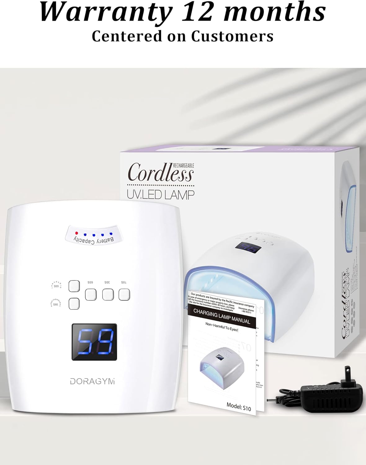 - 【New Painless Faster Design】The 66W led lamp nails can be timed 10s/30s/60s/99s according to your DIY needs. The 60s high power mode and 99s low-temperature mode are more suitable for curing builders and hard gels. The powerful 66W nail cure lamp means faster curing speeds. The LCD screen front panel shows the countdown timer and separates LED lights that indicate the remaining battery capacity so you know when it’s time for a recharge