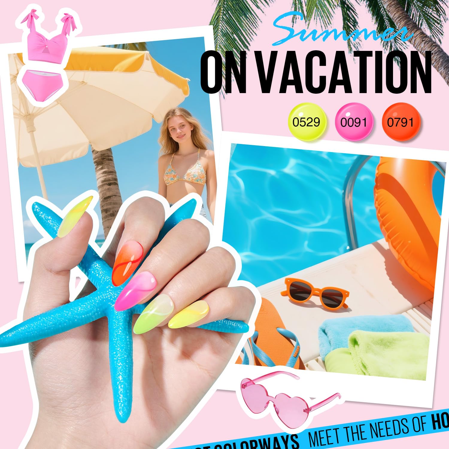 - Summer Neon Gel Nail Polish Set:6 most iconic and trendsetting neon colors, orange, pink, blue, yellow, green, purple, neon means bright and bold; make your life sparkle with neon gel polish